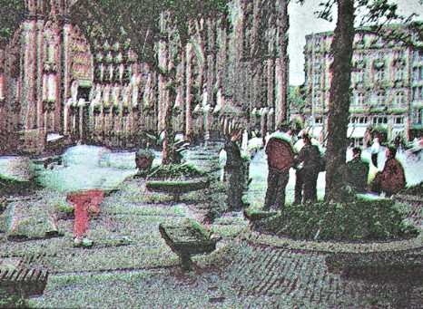 Bei meiner digitalen Kunst geht es mir um das Leben auf der Domplatte mit seiner Hektikoder Ruhe. Die Bronzeplastiken entstanden schon 1988 als Kleinplastiken. |