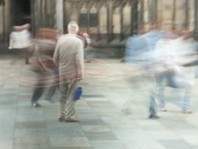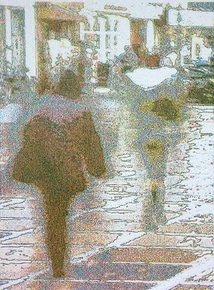 Die Motive der Fussgängerzone zeigen die Flüchtigkeit und die Eile |