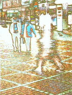 Mein Motiv bleibt der Mensch in seiner Hektik, Eile, Unpersönlichkeit und sein Leben im modernen Egoismus. Es sind digitale Momentaufnahmen ,die ich im Computer verfremdend gestalte. Ich stelle durch den Tintenstrahldrucker Siebdruckschablonen in den entsprechenden Farbauszügen her und drucke im Siebdruck im Format 30x40 cm. Das ist der Beginn meiner digitalen Kunst, da ich die ausgearbeiteten Motive nun digital auf Leinen und Keilrahmen im größeren Format drucke.