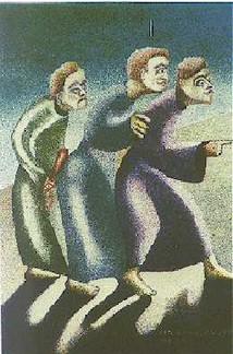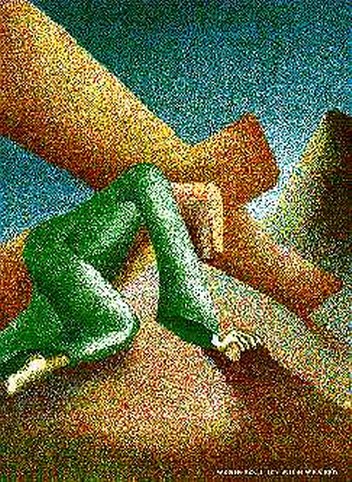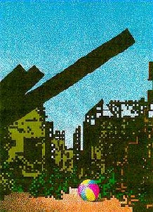 Diese Arbeiten entstanden am Computer. Über ein Malprogramm skizzierte ich die Form und mischte die Farben, wie die Pointilisten mit dem Pinsel , mit der Maus und den Pixeln. Beim Malen auf dem Bildschirm sah ich während der Arbeit nicht das ganze Bild, sondern nur kleine Ausschnitte. Das fertige Bild speicherte ich ab und wurde mit dem Laserdrucker ausgedruckt.