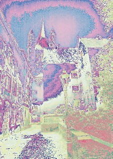Diese Arbeiten entstanden am Computer.Das Bild habe ich anhand mehrerer Programme verfremdet und das fertige Bild speicherte ich ab und druckte mit dem Laserdrucker.