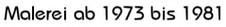 | In dieser Zeit malte ich teils auf Leinwand mit Akrylfarben. Da ich als Kunsterzieher die Farblehre mit den Grundfarben vertrat, malte ich auch hier nur mit den Grundfarben und Weiss. Sie Farben trug ich mit einer Spachtel auf und benutzte lediglich für wenige Partien einen feinen Pinsel |