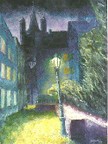 | Diese Bilder malte ich im Format 30 x 40 cm auf Spezialpapier in Ölfarbe. Ich konstruierte in das Bild den Goldenen Schnitt, wobei ich bei der Konstruktion die Kreise zog. Die dadurch entstandenen Flächen waren für mich Flächen für Farbreflektionen und die Grundlage für Farbstimmungen. |