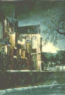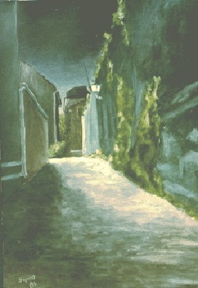 In dieser Zeit malte ich teils auf Spanplatten, teils auf Karton mit Akrylfarben. Da ich als Kunsterzieher die Farblehre mit den Grundfarben vertrat, malte ich selbst zu dieser Zeit bereits nur mit diesen Grundfarben und Weiss. |