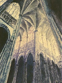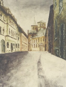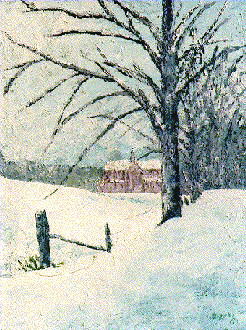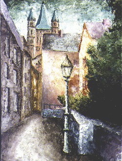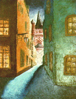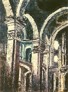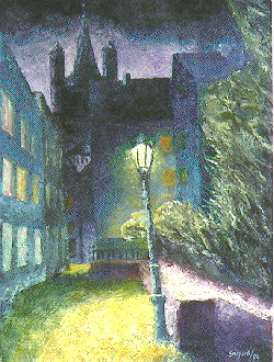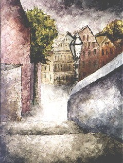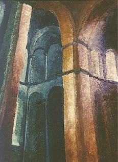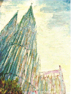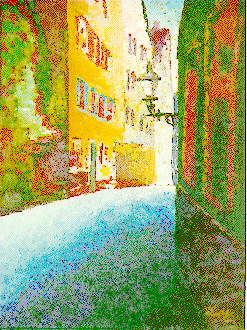 In dieser Zeit malte ich teils auf Leinwand mit Akrylfarben. Da ich als Kunsterzieher die Farblehre mit den Grundfarben vertrat, malte ich auch hier nur mit den Grundfarben und Weiss. Sie Farben trug ich mit einer Spachtel auf und benutzte lediglich für wenige Partien einen feinen Pinsel |