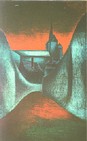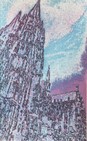 Bei diesen Bildern habe ich das Motiv durch den Computer verfremdet, die negativen Farbauszüge auf 6x9 cm auf Transparentfolie gedruckt und dann auf Planfilm als Siebdruckschablone vergrössert und lasierend übereinander gedruckt