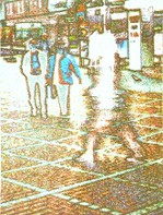 Mein Motiv bleibt der Mensch in seiner Hektik, Eile, Unpersönlichkeit und sein Leben im modernen Egoismus. Es sind digitale Momentaufnahmen ,die ich im Computer verfremdend gestalte. Ich stelle durch den Tintenstrahldrucker Siebdruckschablonen in den entsprechenden Farbauszügen her und drucke im Siebdruck im Format 30x40 cm. |